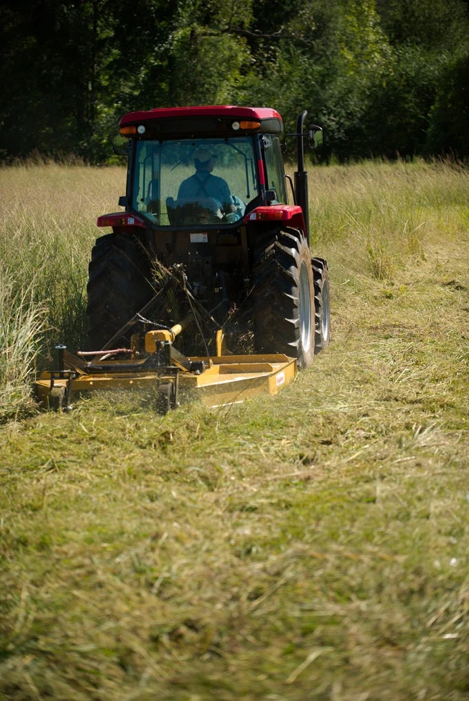 KING KUTTER’S HEAVY DUTY KUTTERS are designed to meet the needs of any tough job. It is constructed of extra heavy material, 8″ I-Beam side rails, and a 3/16″ single sheet top deck that is fully reinforced with cross and spider bracing, this Kutter is built to perform. Each kutter has a splined cast iron gearbox, a shielded PTO shaft with slip clutch, a solid 3/4″ thick steel plate blade carrier, a heavy duty wheel fork(s), a top link swivel, and adjustable laminated tail wheel(s).